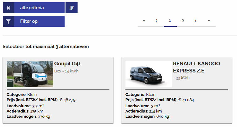#474 - Bij het kiezen van alternatieve elektrische voertuigen, wordt bij het sorteren en tonen meer informatie getoond in de informatie-boxen, zoals: